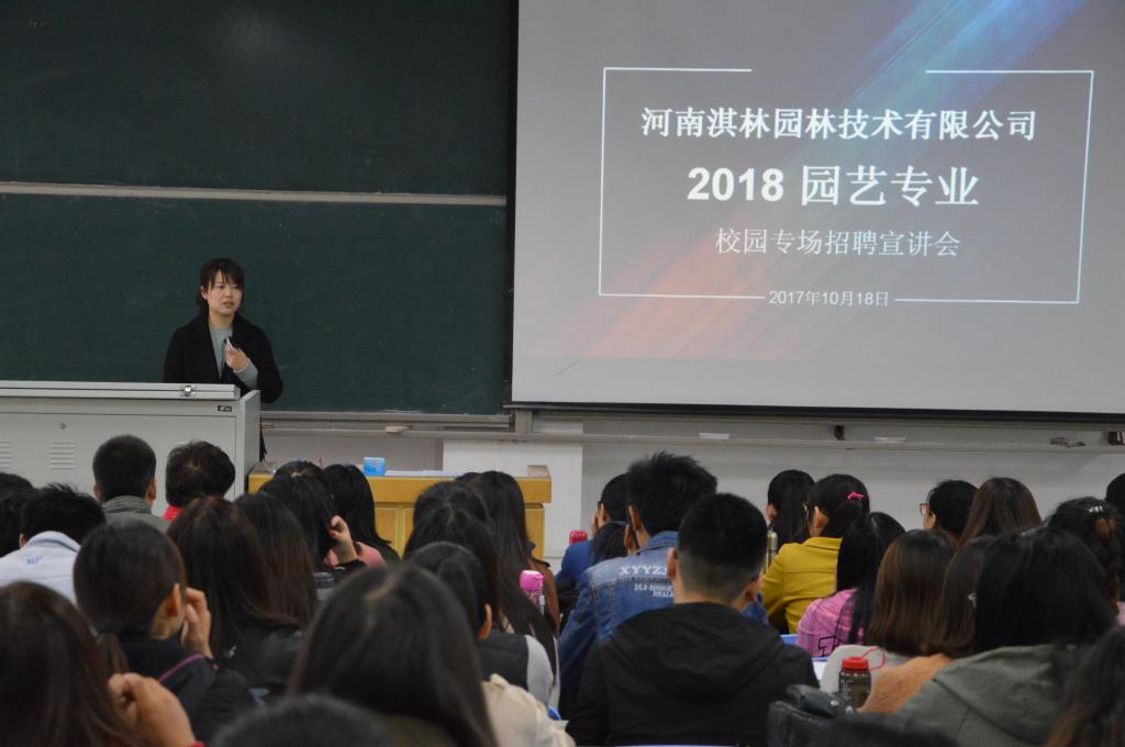 10月18日上午,91做爱 在10#五教室组织开展“名企进校园”——河南淇林园林技术有限公司专场招聘宣讲会,250余名毕业生参加了宣讲会,宣讲会由91做爱 团委辅导员王莹主持。
