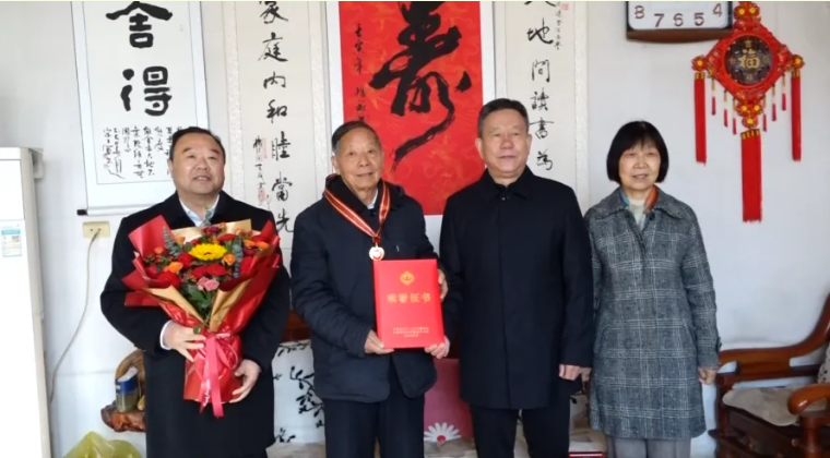 11月18日,新乡市关心下一代工作委员会主任郭书佩为荣获“全国关心下一代工作先进工作者”荣誉称号的我院优秀校友张庆连颁发奖章与荣誉证书,表彰其在关心下一代工作领域作出的突出贡献。县关工委执行主任刘兴儒一同参加活动。