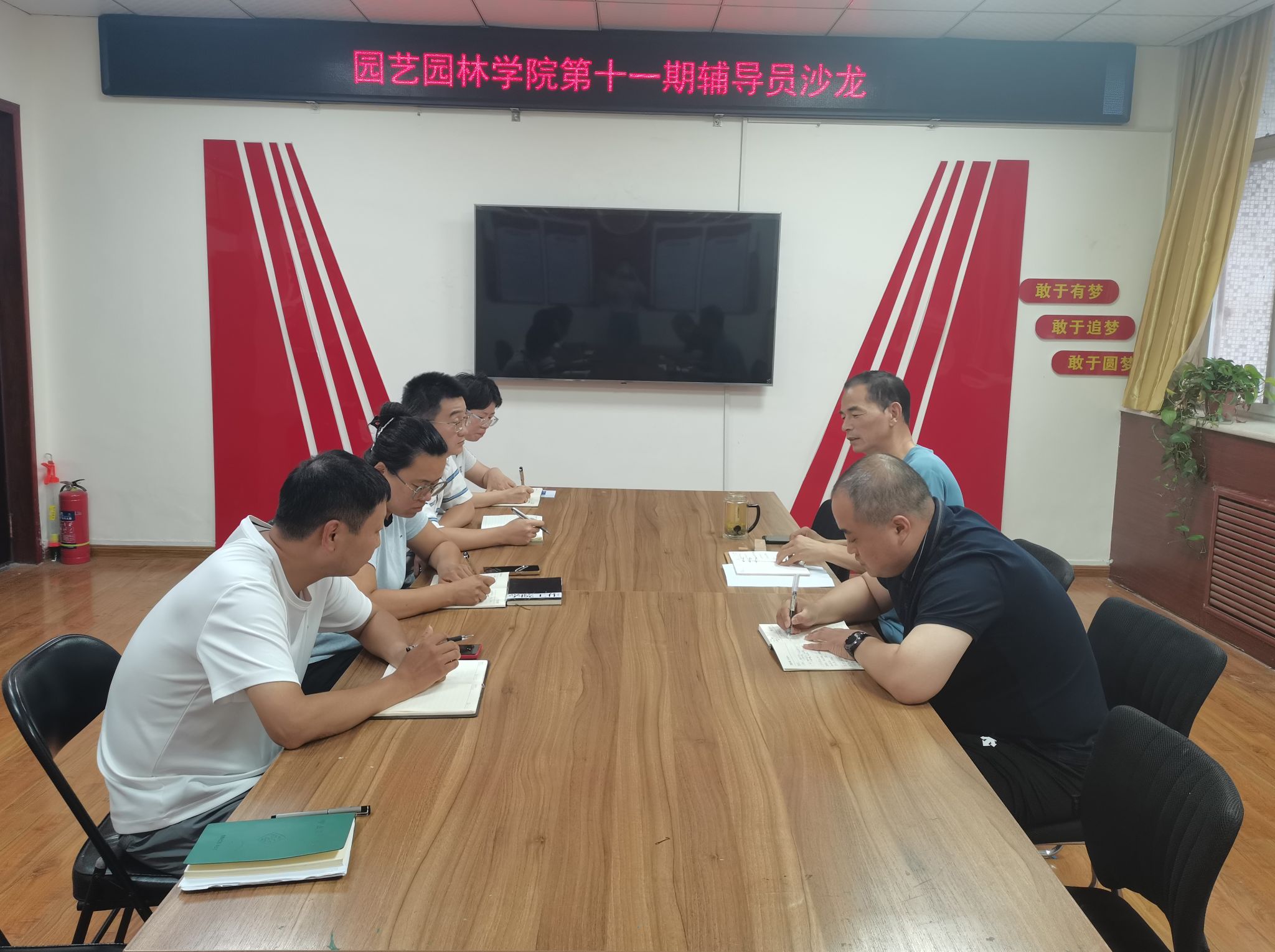 在主题讨论环节,全体辅导员围绕“思想政治教育创新”“假期工作问题攻坚”“新学期工作落地”等主题展开深入交流,就如何创新教育形式、提高教育实效性提出了各自的想法和建议。此外,大家也针对假期工作中遇到的家校沟通协调等问题进行了探讨,共同寻找解决问题的有效方法。会议强调,一是做实做细显担当,强化闭环管理。全体辅导员要以高度的责任心和敬业精神,做到工作有计划、有落实、有检查、有总结,确保各项学生工作落到实处、取得实效;二是要加强自身建设,提升专业能力。全体辅导员要不断加强学习,提高自身的思想政治素质、业务能力和综合素质,努力成为一名政治坚定、业务精湛、作风优良的辅导员;三是深化对外交流,汇聚育人合力。全体辅导员要积极走出去,加强与学校兄弟学院、其他高校学习交流,借鉴先进的工作经验和做法,拓宽工作思路和视野,以“时时放心不下”的责任感和“事事落实到位”的执行力,共同推动学生工作再上新台阶。