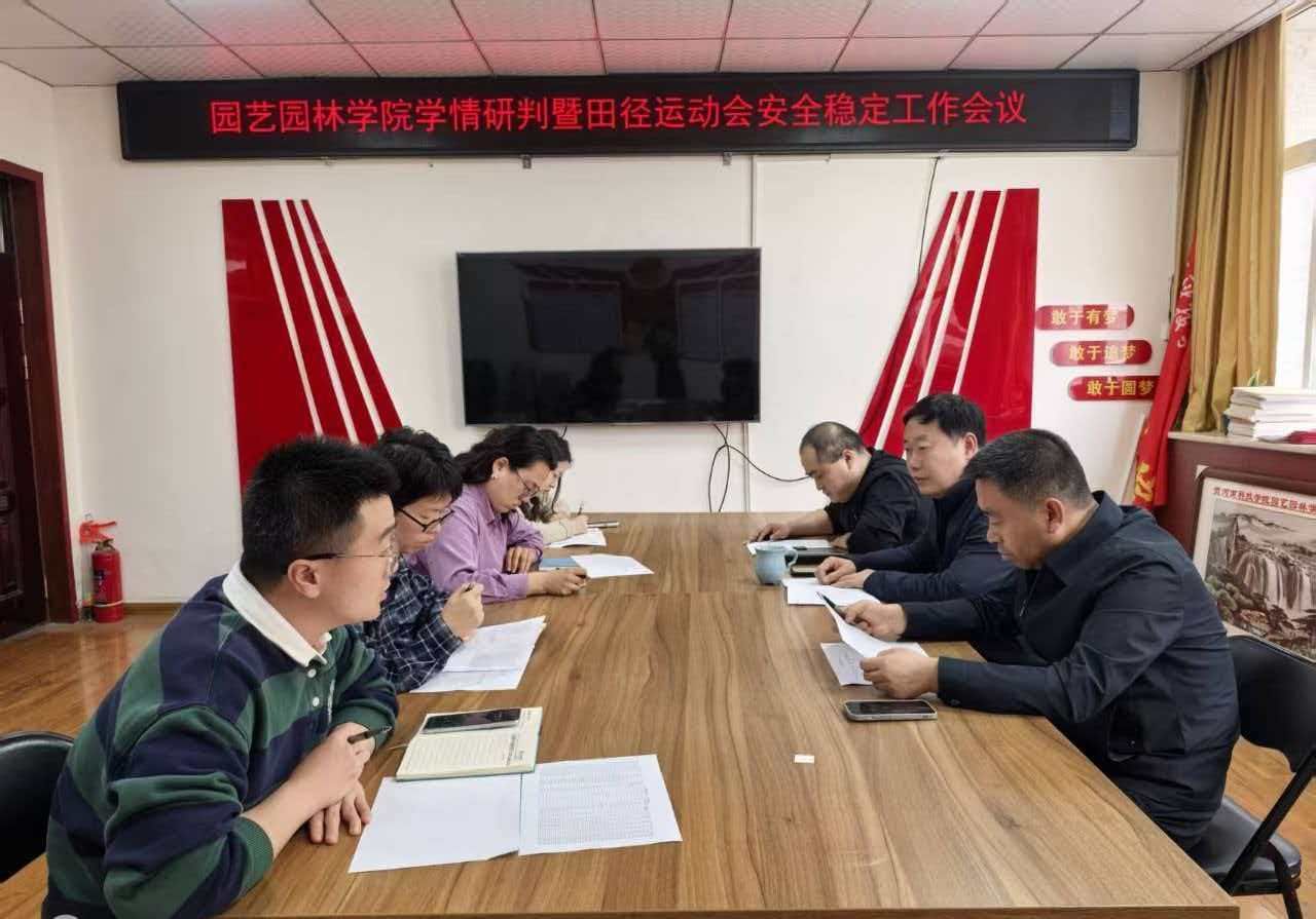 在B106会议室召开学情研判暨田径运动会安全稳定工作会议。学院党委书记孙震寰、院长张毅川,党委副书记王占魁及全体辅导员参加会议。会议由王占魁主持。