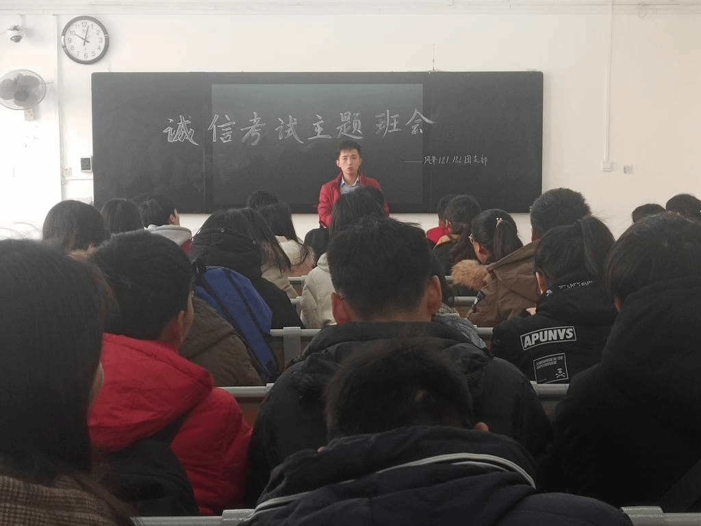 会上,辅导员老师分别“学籍管理规定、学士学位授予工作实施细则、考试违纪作弊处理、安全教育”几个方面入手,告诫同学们要把工作做到平时,不能有临阵磨枪的思想,更不能抱有作弊念头,要全力投入到期末复习中来。要求同学们端正考试态度,遵守考试纪律,诚实做人,诚信考试。最后,就假期去向和安全离校工作做了安排部署。