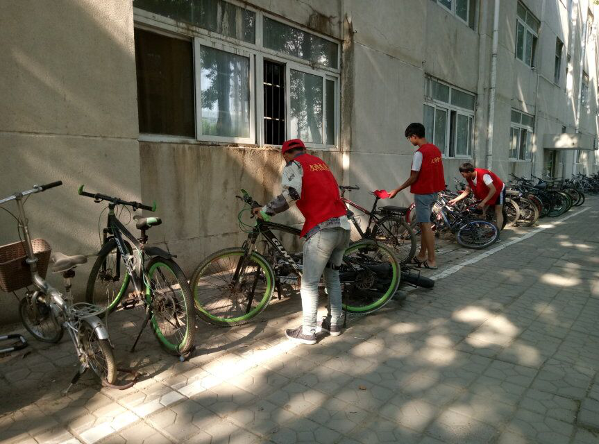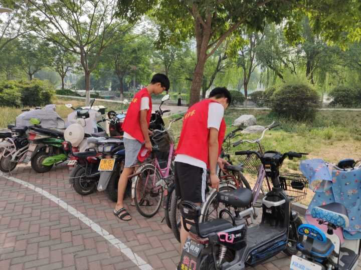 活动开始,志愿者共分为两组同时进行。他们来到宿舍楼、教学楼下,分别把没有按规定或摆放不规整的车辆,通过“一一帮扶”,把他们整齐的放置规定区域,并把丢在地面上的垃圾和纸屑分类放入垃圾桶,美化校园和学习环境。最后,由诚信宣讲人学生代表为同学们进行诚信感恩教育讲解。