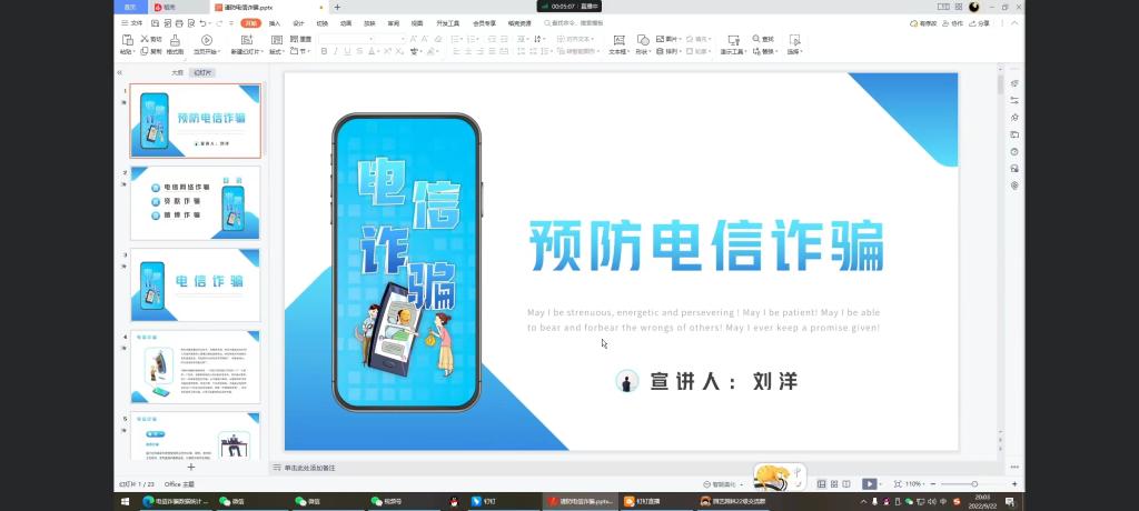于线上开展新生防电信诈骗讲座,由辅导员刘洋主讲。