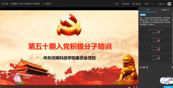 首先,朱书记讲述了中国共产党的性质及宗旨,使学生们对中国共产党有了更系统更深刻的了解,随后朱书记介绍了中国共产党在社会主义初级阶段的基本路线和总体布局,她强调到在抗疫这个特殊时期,同学们一定要敢于承担,勇于奉献,在认真上好网课的同时,做自己力所能及的事情,为身边的同学们树立一个良好的榜样,争取早日加入党组织。
