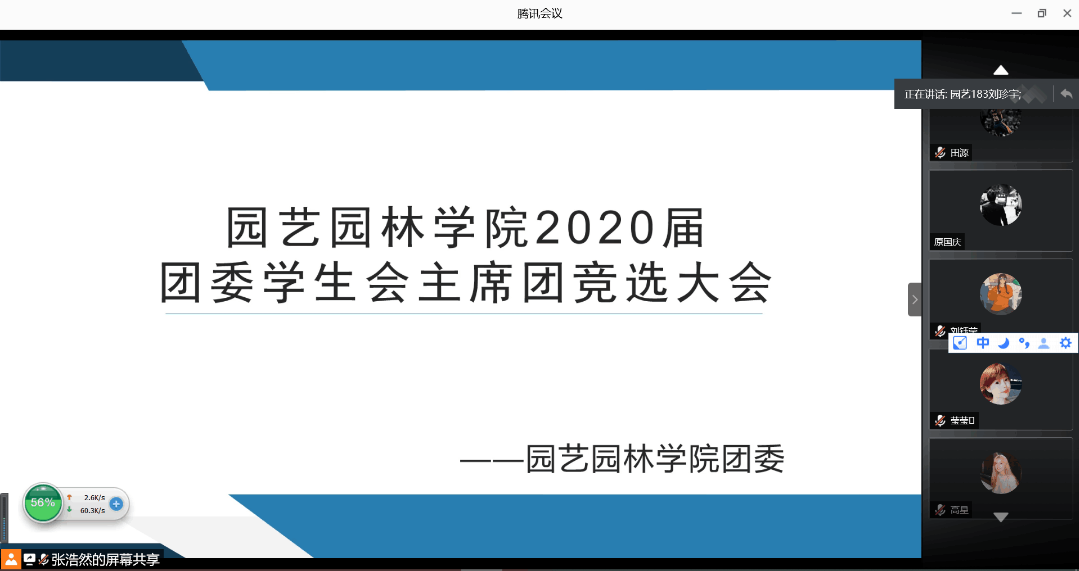 大会开始,首先李秉龙宣读了大会流程和注意事项,然后候选人按照抽签顺序依次进入视频会议。各位候选人分别从自我介绍、工作总结、工作展望等几个方面进行了竞聘演讲;通过在学生会各部门的工作感悟,进行了认真、全面、透彻的精彩答辩。