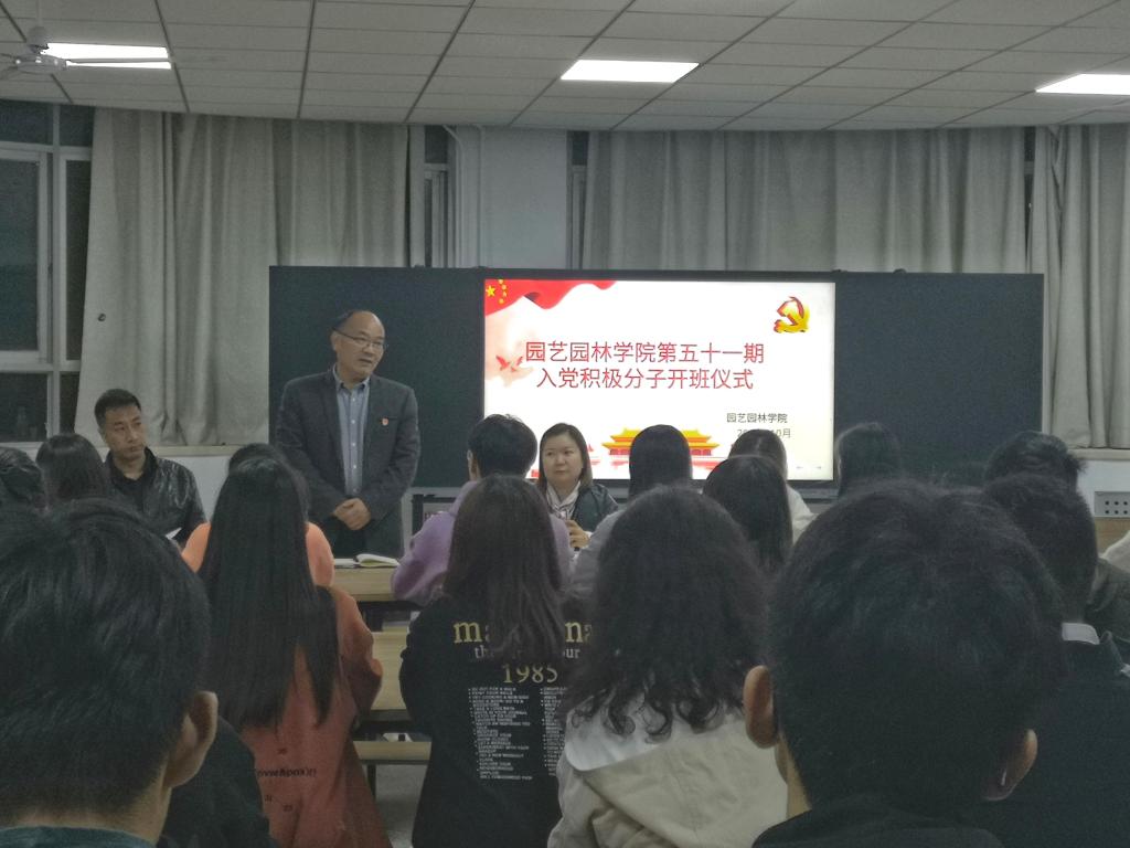 于实验楼A段一楼画室举行五十一期入党积极分子开班仪式,参加会议的有党委书记郜庆炉、党委副书记朱黎娅、学院全体辅导员以及第五十一期61名入党积极分子。会议由辅导员赵艳芳主持。