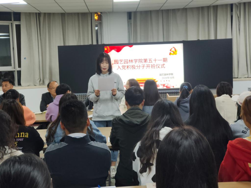 会上,全体起立奏唱《国际歌》,贺松涛宣读培训任务和学习要求,详细介绍了此次培训的计划安排,入党积极分子学员代表园艺193班崔钰凤发言,深切的表达了要努力学习党的基本知识,积极向党组织靠拢的决心。