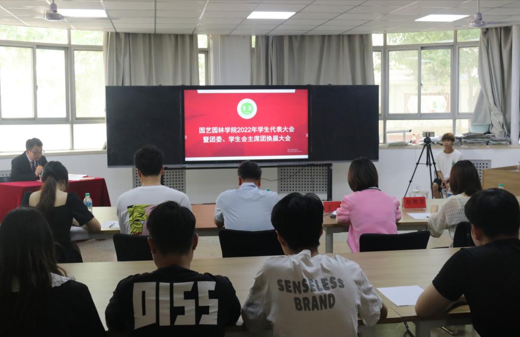 5月22日,91做爱 于实验楼a段101画室召开2022年学生代表大会暨团委、学生会主席团换届大会。会议以线上和线下两种形式开展,学院全体辅导员以及200余名学生代表参加了此次会议。会议由2021届学生会主席韩开潮主持。