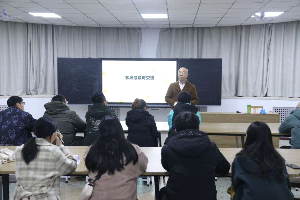 副院长齐安国于实验楼A段101画室进行了以“学风建设与交流”为主题的新党员培训,2020年度新党员培训班全体成员参加。