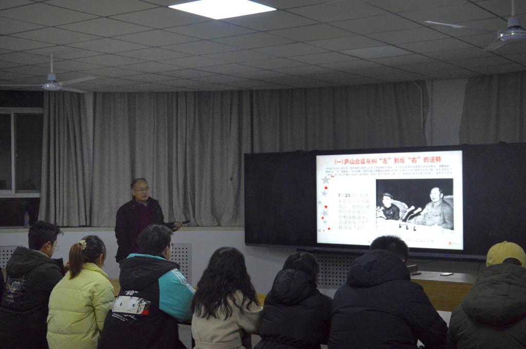 课上,郜庆炉书记以“为什么要学党史”为切入点,使新党员产生思考。随后,针对中国共产党在中国新民主主义革命、确立社会主义制度并开始全面建设的艰苦探索、改革开放和建设中国特色社会主义三个历史阶段进行讲解。并对党的创立、党的状况、党的发展,进行进一步详细地讲解,结合党在全民族抗日战争时期以及革命斗争时期的历史故事,提醒新党员们要通过对党史的总结与学习,增强对党的思想、理论、方针的领悟。最后,郜书记勉励全体参训学员要端正态度认真学习,通过对党史的学习,以史为鉴,争做一名优秀的共产党员。