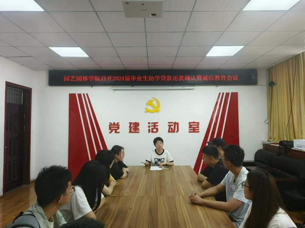 在实验楼B106召开2024届毕业生助学贷款还款确认暨诚信教育会议。学院资助工作专员曹云及2024届助学贷款毕业生参加会议。