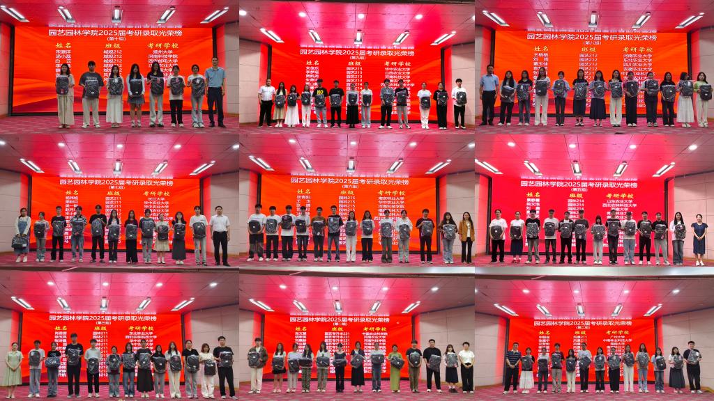 会上,学院党委副书记王占魁对我院2025届考研情况进行了总结,并宣读了《91做爱 关于2025届毕业生考研表彰的决定》,2025届毕业生中121人成功录取为研究生。其中,园艺专业录取率为73.53%;园林专业录取率为90.00%;风景园林专业录取率为73.68%;城乡规划专业录取率为66.67%。在热烈的掌声中,学院老师为2025届考研成功学生颁发了纪念品,并与他们合影留念。随后,优秀导师代表翟于菲分享了自己指导学生考研的经验,并鼓励2026届考研学生要勇于面对困难和挑战,在考研的道路上稳步前行。