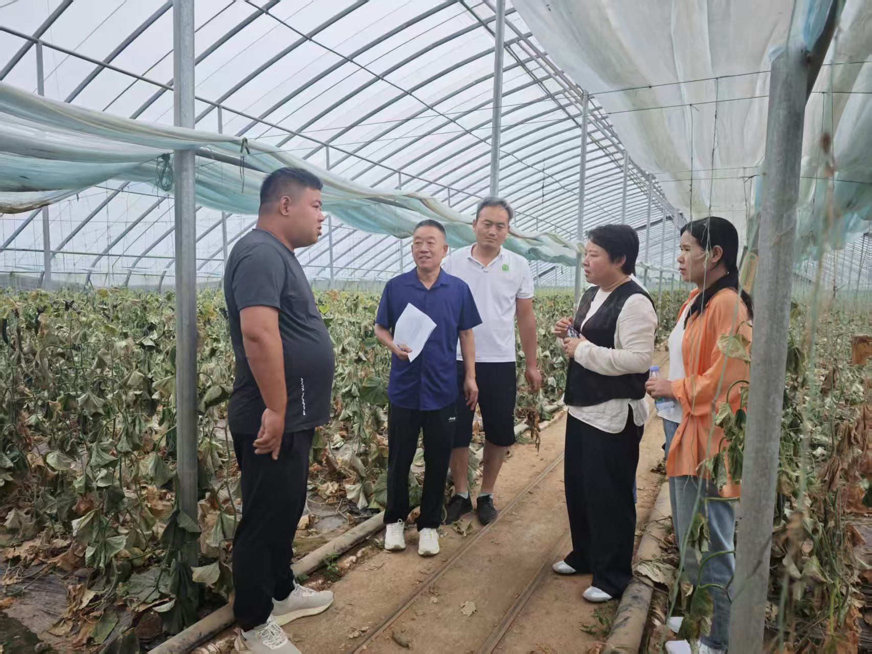 随后团队成员陪同茆振川研究员到新乡市龙华种植农民专业合作社进行现场调研,调研发现该基地黄瓜根结线虫均达到5级以上,对黄瓜后期产量影响很大;专家团队与合作社总经理贾新飞关于根结线虫绿色防控进行技术交底,贾新飞经理对专家团队的到来表示热烈欢迎,并期待通过新技术应用,提升地力,降低生产成本,提高蔬菜品质,增强市场竞争力。