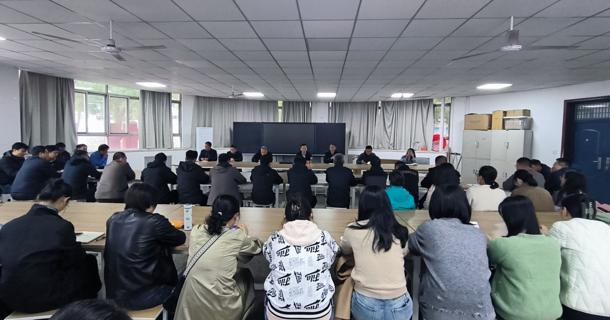 指导科研团队建设工作并作辅导报告。学院全体教师参加会议,会议由学院党委书记郭超杰主持。