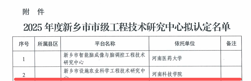 近日,新乡市科学技术局正式发布《关于认定2025年度新乡市市级工程技术研究中心的通知》(新科【2025】60号),我院申报的“新乡市设施农业科学与工程技术研究中心”成功获批立项建设。