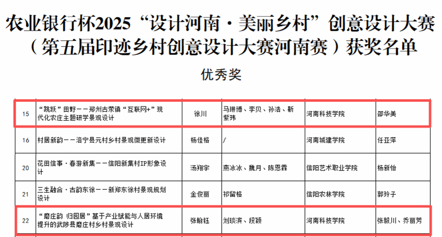 此次竞赛成绩的取得,是学院长期坚持以学科建设为引领、以实践教学为抓手,持续推进“以赛促学、以赛促教、赛教融合”人才培养模式的集中体现。未来,学院将深化“竞赛-实践-创新”三位一体培养模式,聚焦乡村设计核心需求,持续培育兼具产业思维、本土情怀与创新能力的高素质人才,为“设计河南·美丽乡村”建设及共同绘就宜居宜业和美乡村新图景注入新活力。