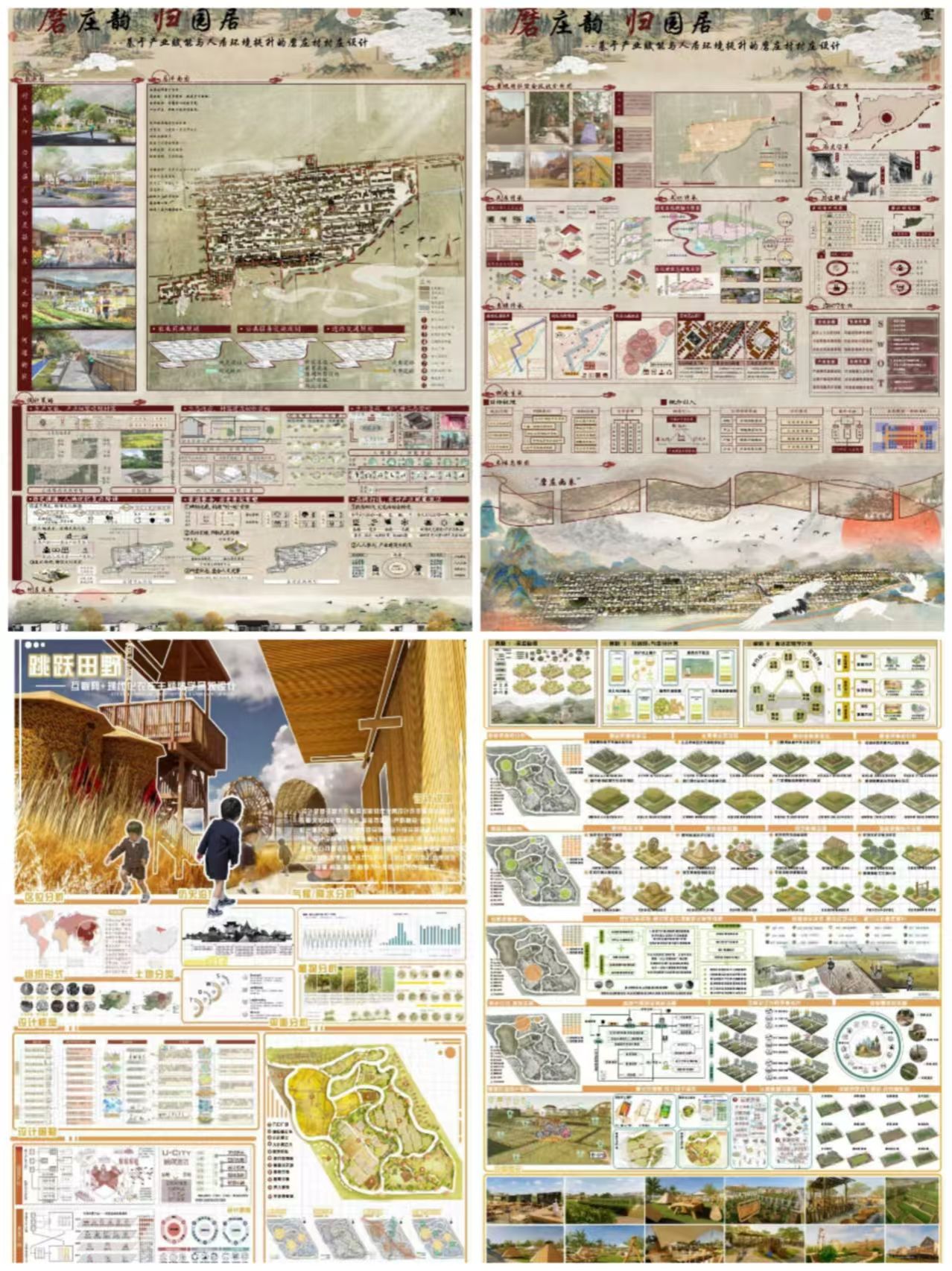 在乡村景观设计赛道中,张毅川教授、乔丽芳教授指导的风景园林专业本科生张翰钰、刘琰滨、段颖的参赛作品《“磨庄韵 归园居”基于产业赋能与人居环境提升的武陟县磨庄村乡村景观设计》荣获省赛优秀奖。邵华美老师指导的风景园林专业研究生徐川、马琳博、李贝、孙浩、靳紫玮的参赛作品《“跳跃”田野——郑州古荥镇“互联网+”现代化农庄主题研学景观设计》荣获省赛优秀奖。《“磨庄韵 归园居”》以河南省焦作市武陟县磨庄村为研究对象,立足乡村振兴战略,以“产业赋能、环境提升、文化传承”为总体思路,构建宜居宜业的美丽乡村。通过产业驱动与人居环境改善的双轮作用,磨庄村将实现经济活力增强、生态环境优美、村民生活品质提升的目标,成为焦作市乡村振兴的示范样板。《“跳跃”田野》项目位于郑州惠济区古荥镇,依托汉文化底蕴与黄河生态景观,打造“跳跃田野”互联网+现代农业研学基地。通过景观轴线有机串联多彩农田、研学讲堂、户外实验田等功能区,为4—12岁儿童及家庭提供一站式研学体验。