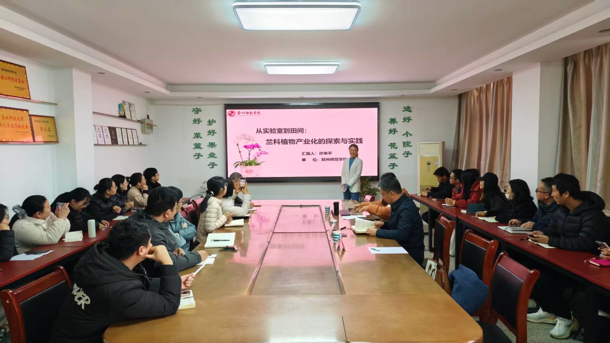 邀请,我校校友、郑州师范学院许申平教授在实验楼B316会议室作题为《从实验室到田间:兰科植物产业化的探索与实践》的学术报告,并就科研成果转化与产业化发展进行指导。学院领导班子成员、科研团队负责人以及近五年入职的青年教师共30余人参会,会议由学术副院长袁敬平主持。