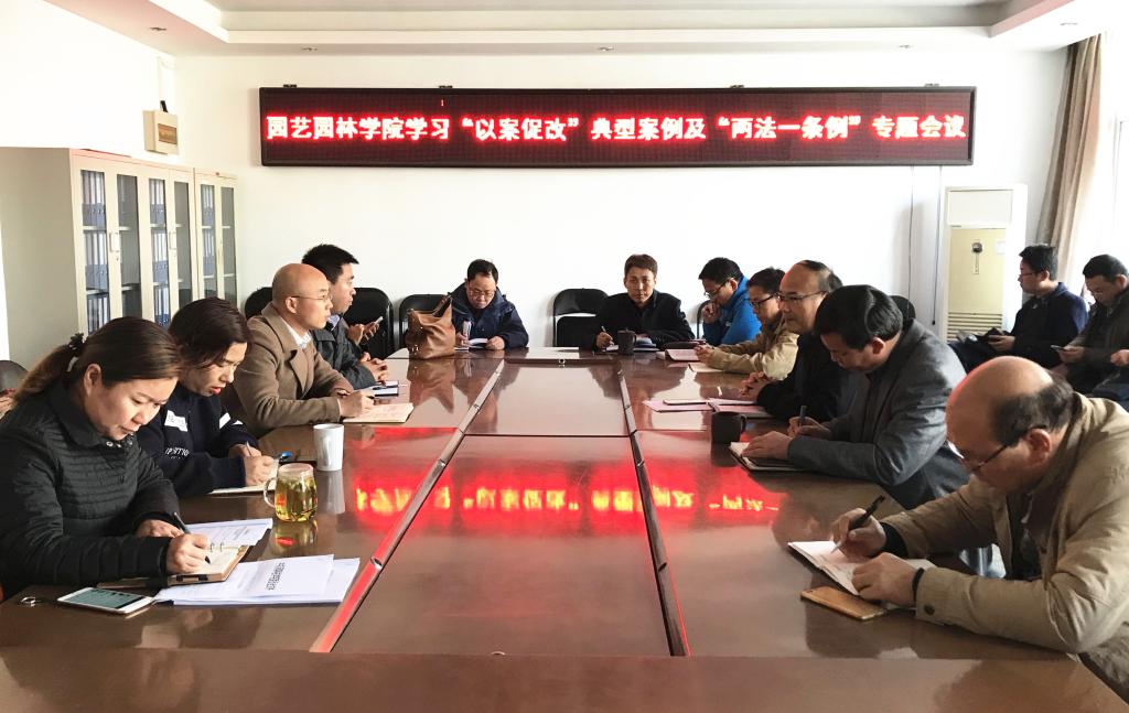 于实验楼B段312会议室组织召开“以案促改”典型案例及“两法一条例”学习会。学院党政领导班子、副高级以上以及科级以上教工参加了此次会议,会议由党委书记郜庆炉主持。
