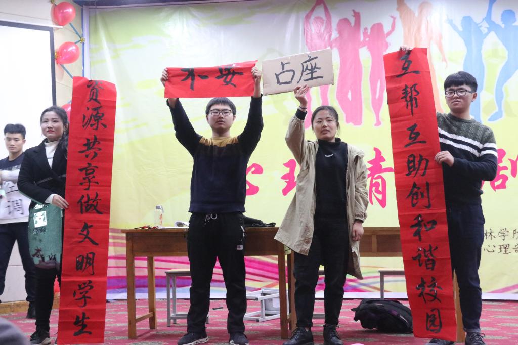 在图教201举办了“放飞青春,从心启航”心理情景剧比赛。学院党委副书记朱黎娅、团委全体辅导员以及2018级学生300余人参加了此次活动。