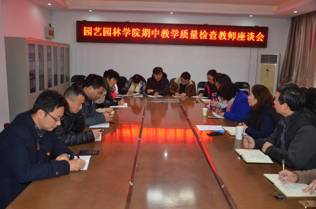 在院会议室召开期中暨迎评促改教师座谈会,院长周俊国带领的院行政领导班子所有成员、校级督导陈翠玲、院级督导王少平、各专业负责人、教学秘书及各教研室代表共19人出席了座谈会。