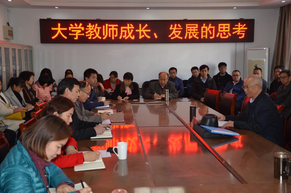 在院会议室举行了题为“大学教师成长、发展的思考”的报告会,报告会邀请我院退休教师韩德全教授主讲。我院全体领导班子成员和教师参加了报告会。