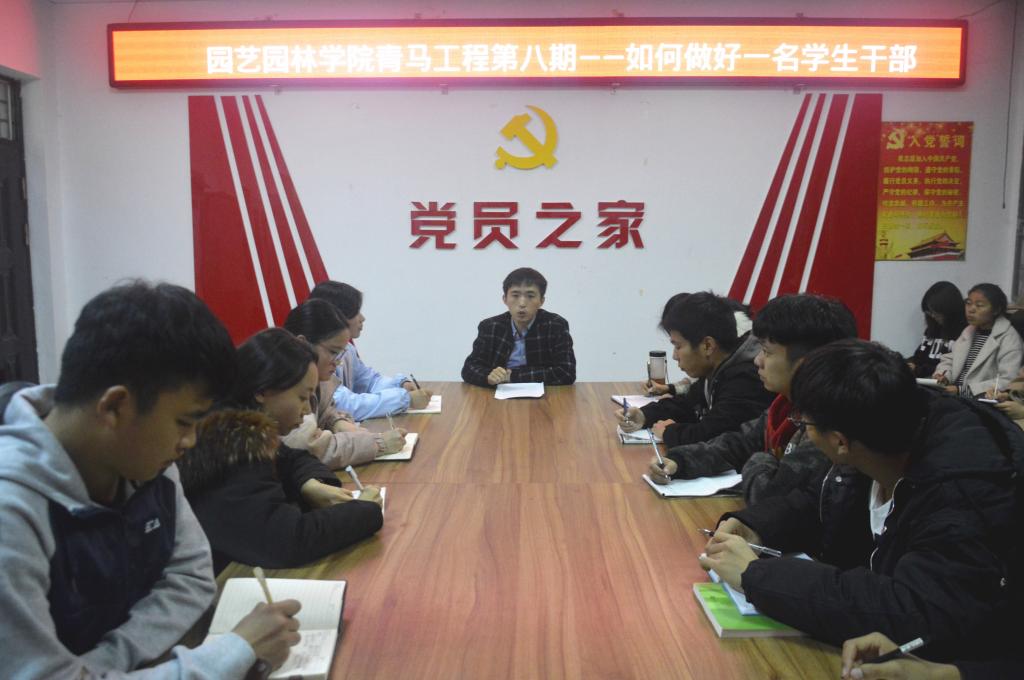 于实验楼B段106会议室举行第八期青马工程系列培训之如何做好一名学生干部。学院学生干部30余人参加了此次培训,此次主讲人为辅导员张立老师。