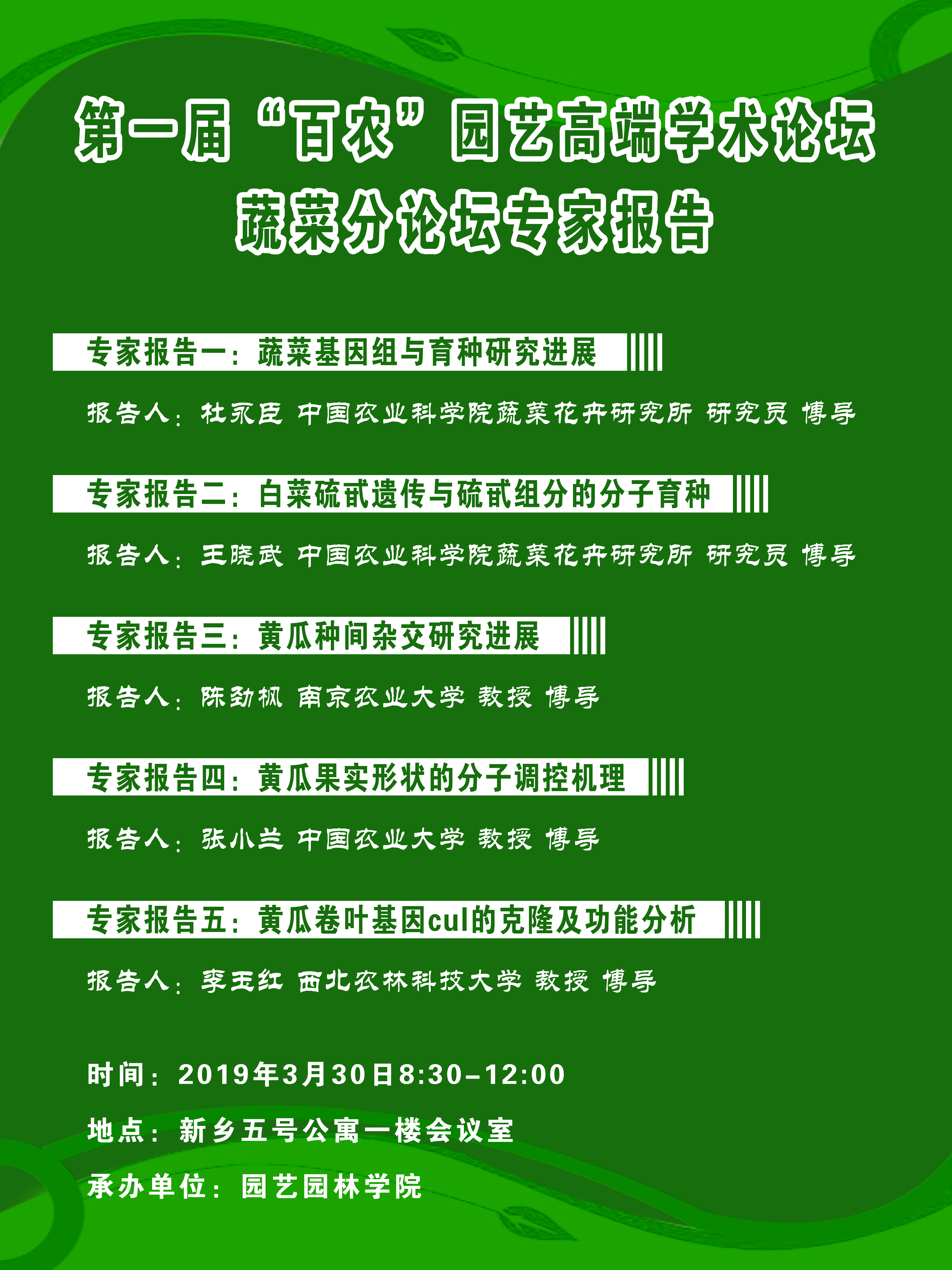 第一届“百农”园艺高端学术论坛蔬菜分论坛专家报告