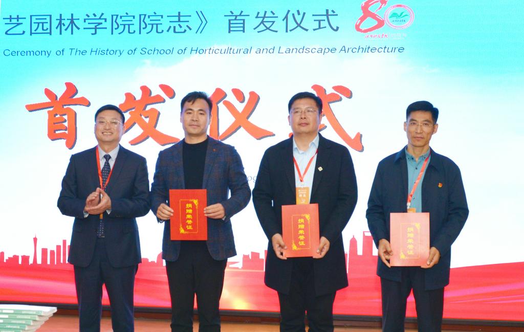 周志远、何松林、郜庆炉、周俊国分别为向母校捐款、捐物的优秀校友丁自立、蔡友军、张少伟、刘振兴、牛玉海、冯国杰、薛水波、李运成、周树广、李玉红、房玉林、周琳、徐炎、张磊、王兆海、张钊远、司志国、王存纲、高愿军、苗保期、豁泽春、艾建东等人颁发了捐赠证书;郜庆炉、周俊国分别为退休教师代表、优秀校友代表、曾在学院工作学习的领导代表、教师代表赠送了院志。