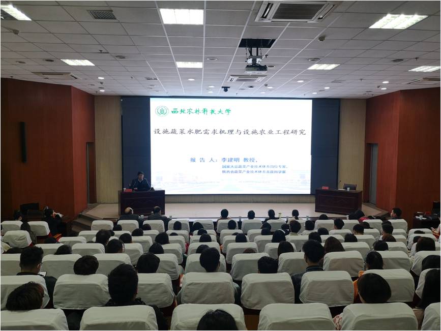 2021年4月1日上午,西北农林科技大学李建明教授到我院进行学术交流,在新图书馆一楼学术报告厅做了题目为“设施蔬菜水肥需求机理与设施农业工程研究”的学术报告。学院教师、硕士研究生及本科生参加了报告会。报告会由张毅川副院长主持。
