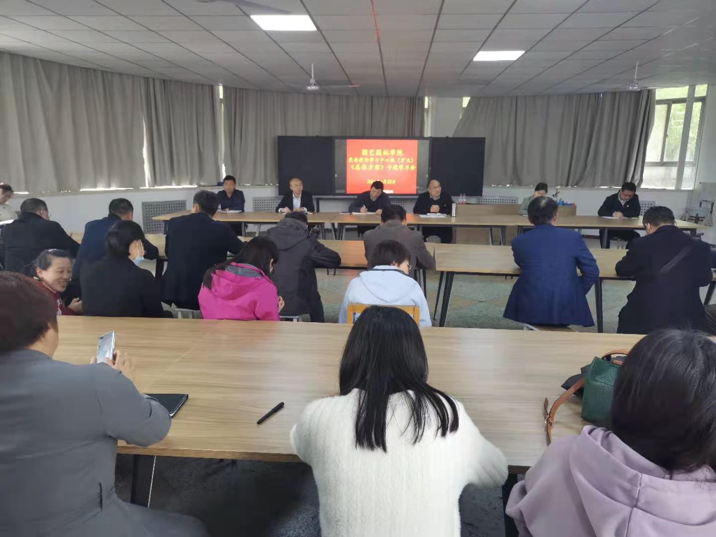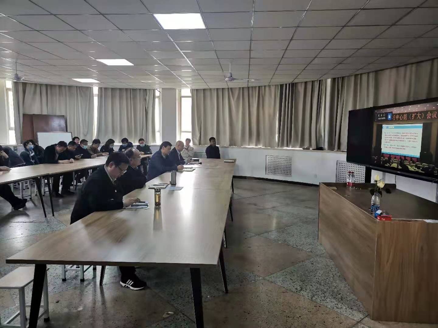在实验楼A段一楼会议室召开党委理论学习中心组(扩大)《深化新时代教育评价改革总体方案》专题学习会。会议由党委书记郜庆炉主持,全体教职工参加。