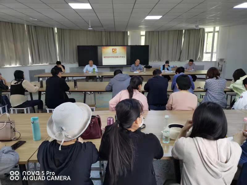 在实验楼A段一楼会议室召开党建工作会议。会议由学院党委书记郜庆炉主持,全体党员参加。