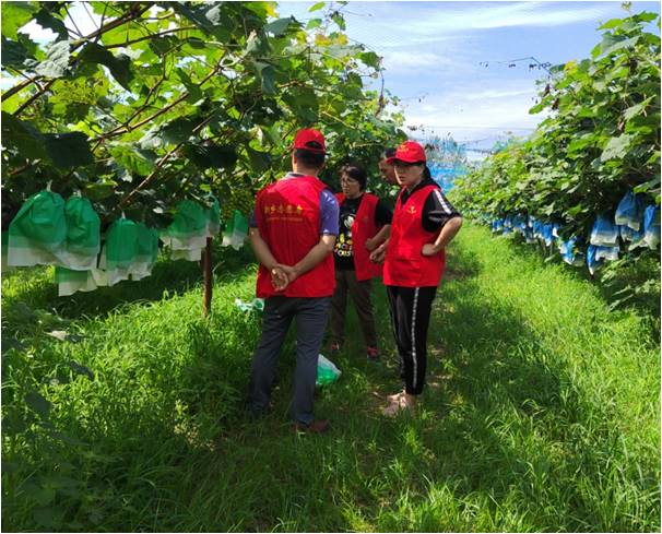 为帮助果农及时排除果园积水,恢复树势,降低损失,服务团向两个村受灾农户捐赠了果树急需的杀菌药剂,然后针对地表积水已排净的葡萄园、桃园、苹果园,提出果园翻耕降墒、适当修剪减少蒸发、及时喷施杀菌剂防病和加强叶面肥增强树势等技术措施,并向果农发放了“洪涝灾害后果园管理技术”明白纸,上面附有服务团成员联系方式等信息,便于后期果农技术咨询。