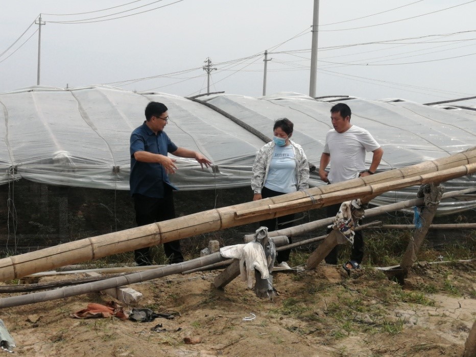 李新峥教授和陈碧华博士,赴延津县僧固乡辛庄村指导大棚蔬菜洪灾后生产恢复工作。新乡市农业农村局农业综合开发中心王淑芳科长和王俊涛高级农艺师、延津县农业农村局僧固乡区域站站长吕志东参加了指导活动。