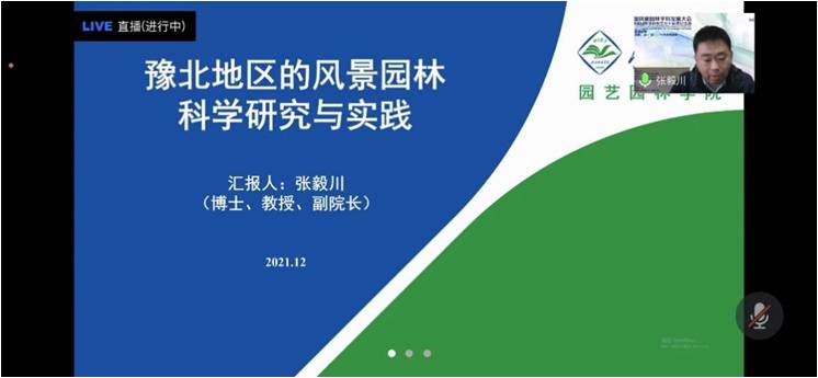 由于疫情防控的原因,此次采取线上报告的形式。会上,张毅川教授作了题为“豫北地区的风景园林科学研究与实践”,系统总结了我校风景园林学科的研究成果和研究特色,引起了参会者的关注。会议主持人中南林业科技大学文亚峰教授给与了高度评价。风景园林学科将在学科带头人何松林教授的指导下,继往开来,开创学科建设新局面。