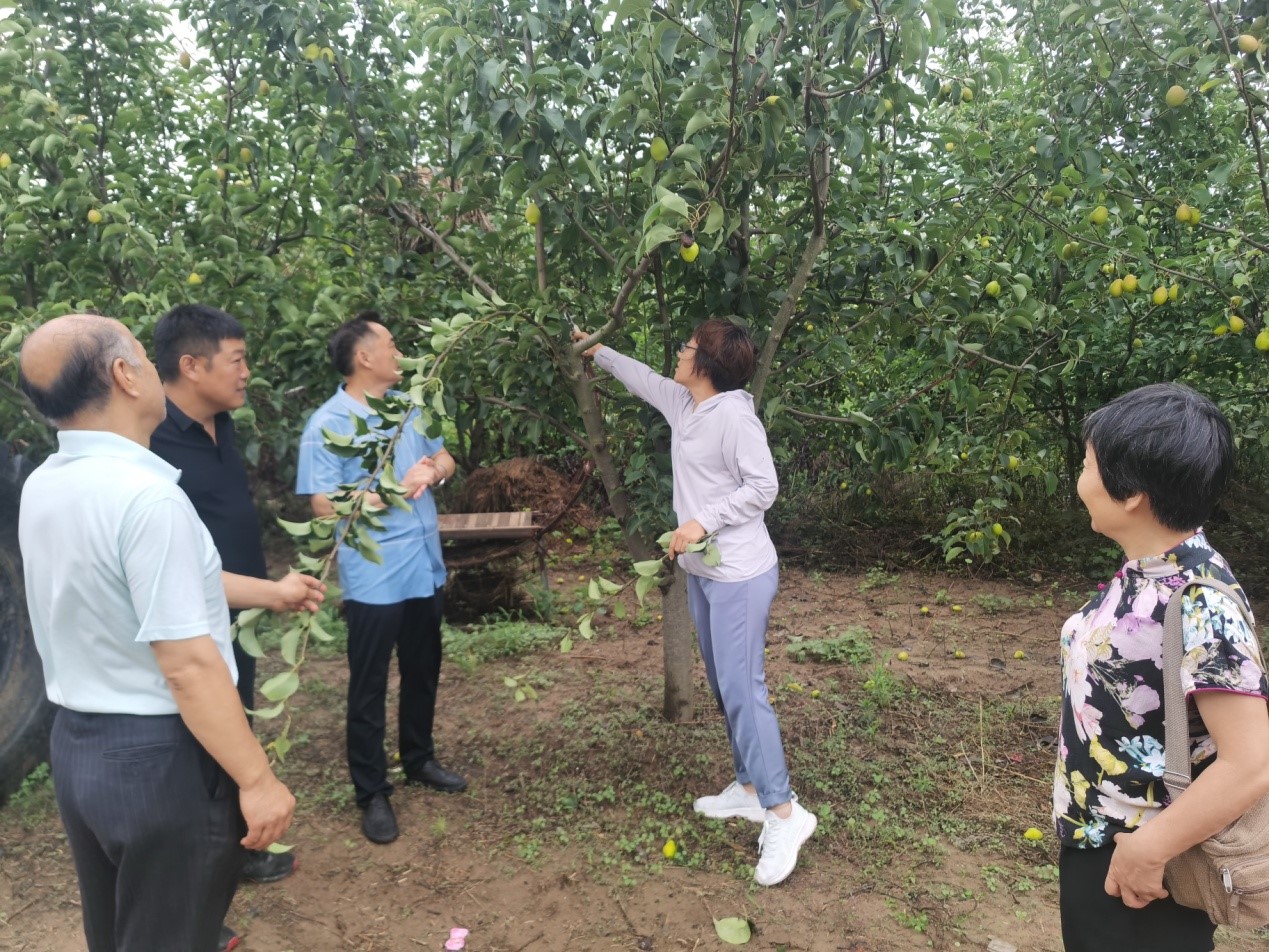 在商水县和畅中小学研学基地,几位老师参观了解了室内、室外活动场地,负责人对主题活动场地、研学设施、自然人文景观、今后发展思路、存在问题和困难等情况作了详细介绍。周瑞金副教授就研学基地科普用树的树种选择提出建议,在查看了现有果树生长情况后,指出观赏果树的整形修剪方法和要求,并对果树夏季修剪进行示范指导,就园区果树管理注意事项进行解答。最后,对研学基地后期开设园艺植物识别科普课程提出建议,后期可为基地技术人员开展相关内容专项培训。