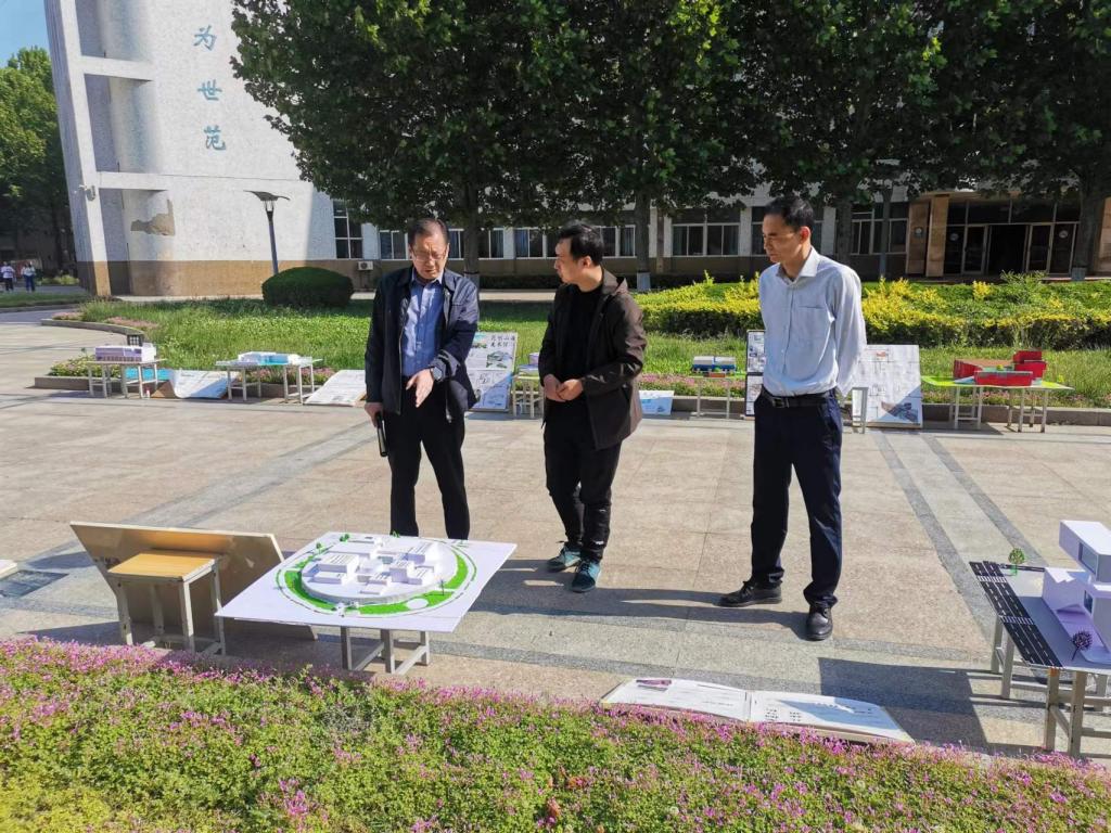5月8日下午,城乡规划学专业《建筑设计II》建筑案例分析实习作业在国旗广场公开展出,学院班子成员现场指导学生实习作品。
