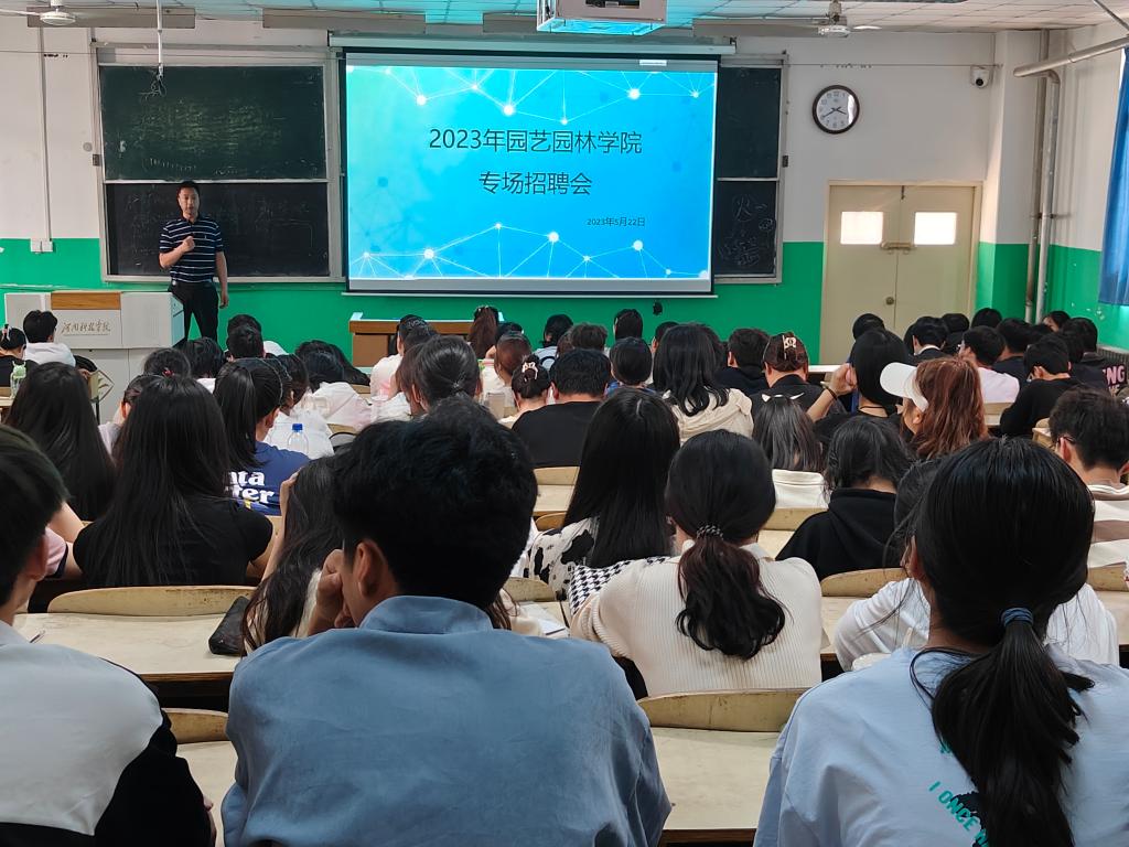 在二合一教室举办了毕业生专场招聘双选会。郑州海之源生物科技有限公司等5家企业参会,学院领导班子到现场指导并与参会企业进行了深入交流。