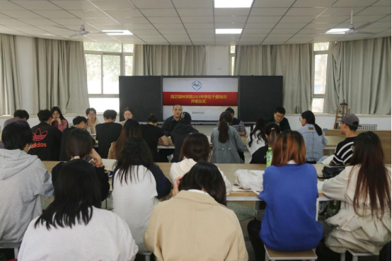 在A101教室举行2023年学生干部培训班开班仪式。学院党委副书记王占魁,团委书记刘璐,团委副书记王伟瑜,辅导员曹云、黄金旭、刘洋及学生干部代表参加开班仪式。开班仪式由刘璐主持。