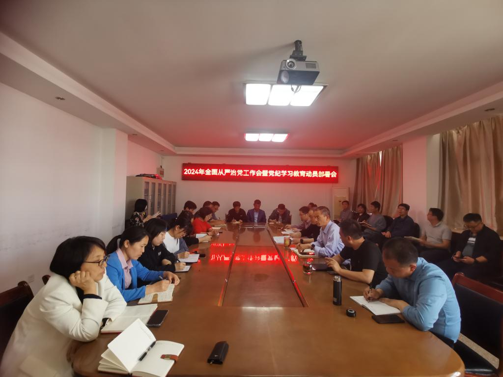 在实验楼B316会议室召开2024年全面从严治党工作会暨党纪学习教育动员部署会,学院班子成员、党支部书记、全体科级干部等人员参加会议,会议由党委书记郭超杰主持。