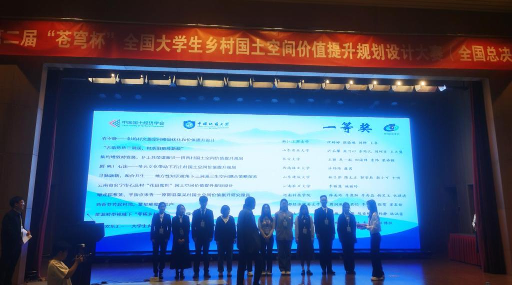 第二届“苍穹杯”全国大学生乡村国土空间价值提升规划设计全国总决赛于2024年4月19日-21日在中国地质大学(北京)举行,我院城乡规划专业学生参赛作品《鳅戏稻葱茏,手指点米香—原阳县菜吴村国土空间价值提升研究报告》荣获一等奖。