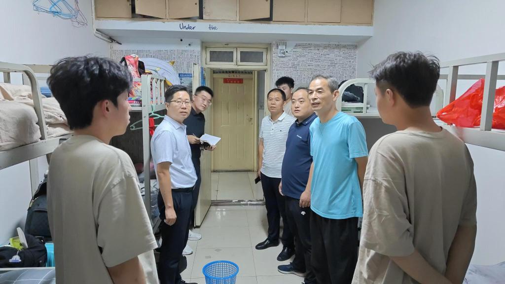 9月8日,学院党委书记郭超杰、党委副书记王占魁、副院长孙涌栋、贾文庆及全体辅导员深入宿舍走访看望2024级新生。
