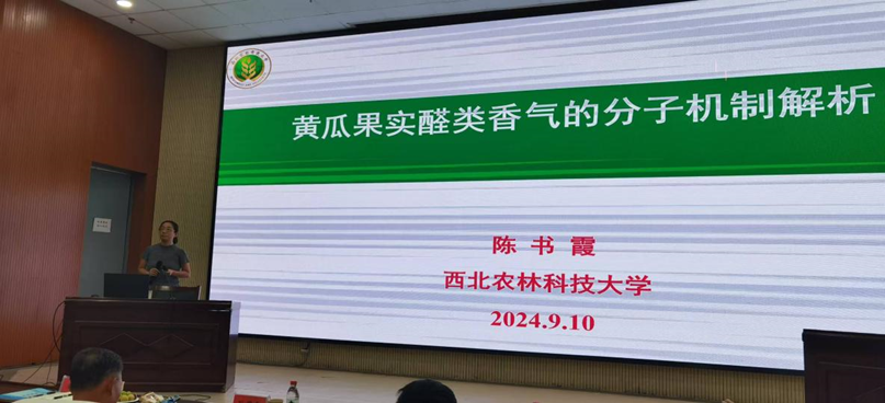 陈书霞教授以“黄瓜果实醛类香气的分子机制解析”为题进行学术报告,陈教授结合自身研究经验,详细阐述了黄瓜果实香气产生的分子机制,以及黄瓜分子育种面临的机遇和挑战。报告结束后,陈教授与师生进行了深入交流和讨论。