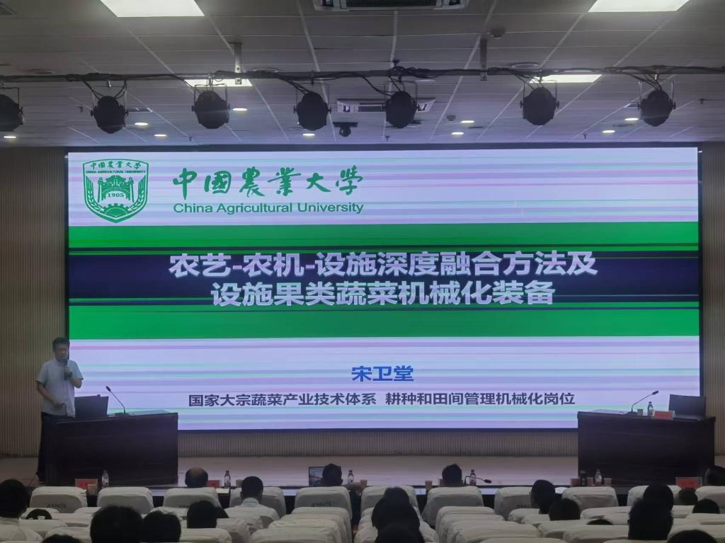 宋卫堂教授以“农艺-农机-设施深度融合方法及设施果类蔬菜机械化装备”为题进行了学术汇报。宋教授详细介绍了农艺-农机-设施深度融合方法,设施果类蔬菜宜机化栽培模式,设施果类蔬菜机械化装备设施果类蔬菜机械化新方法新技术,为未来设施蔬菜机械化发展提供了积极方案。