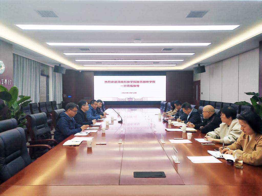 副院长孙涌栋和贾文庆带队赴华中农业大学调研专业及学科建设、本科生培养方案修订、研究生人才培养等工作。华中农业大学园艺林学学院院长程运江,副院长张斌、周继荣及相关教学管理人员参与座谈及交流。