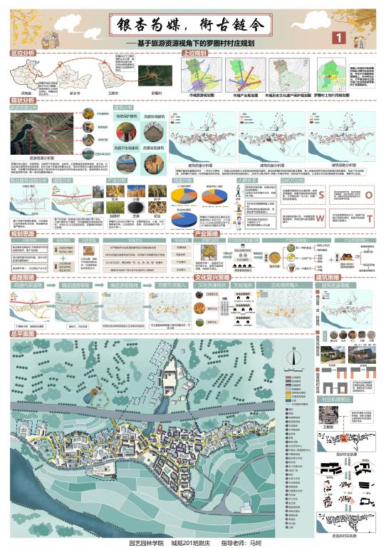 我院师生在本届赛事中表现优异,斩获多项荣誉。张毅川老师指导的张倩瑜同学作品《茶香浉道——信阳市浉河区茶文化滨水公园景观设计》斩获人气奖;其指导的许相龙同学作品《伏羲宛丘——淮阳区伏羲文化公园景观设计》获荣誉奖。马珂老师指导的尉庆同学作品《银杏为媒,衔古链今——基于旅游资源视角下的罗圈村村庄规划》与丁海涛同学作品《古村换新焕新生,古韵载今天风》双双摘得荣誉奖。这些获奖作品聚焦地域文化传承与生态景观设计,充分体现了我院学子扎实的专业功底与创新实践能力。
