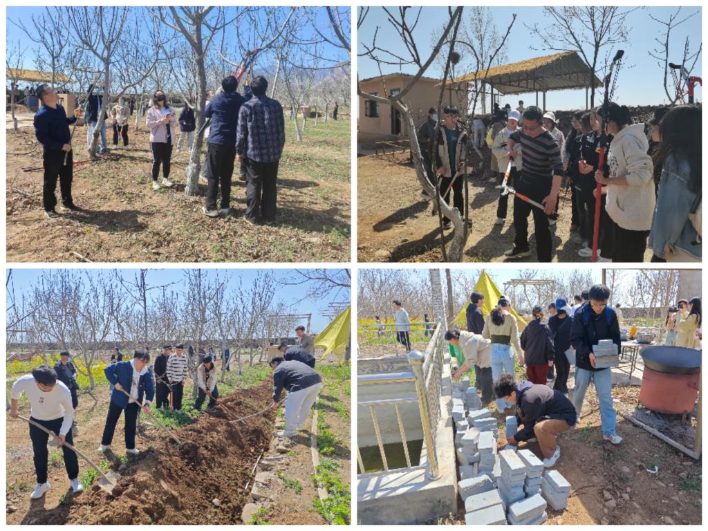 在辉县市上八里镇王家河坡“百农小院”实践基地,学员们化身生态建设先锋队,在专业教师的指导下投身实践。“修剪攻坚组”手持工具,进行疏枝、定型等园艺技术;“生态修复组”挥锹铲土,在翻新的土地上均匀撒播草籽、花种;“基建服务组”齐心协力搬砖、填坑,平整园区道路,各组在劳动中穿插开展“田间微党课”。