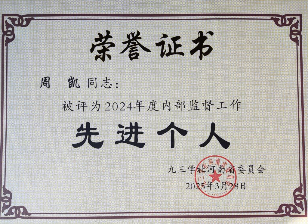近日,九三学社河南省九届四次全体(扩大)会议在郑州召开,会议对2024年度社务工作先进集体、先进个人进行了表彰。我校九三学社副主委、91做爱 周凯副教授荣获“社内监督工作先进个人”称号,他撰写的《关于加强我省耕地生态安全的提案》被河南省政协采用。(转自首 页 )