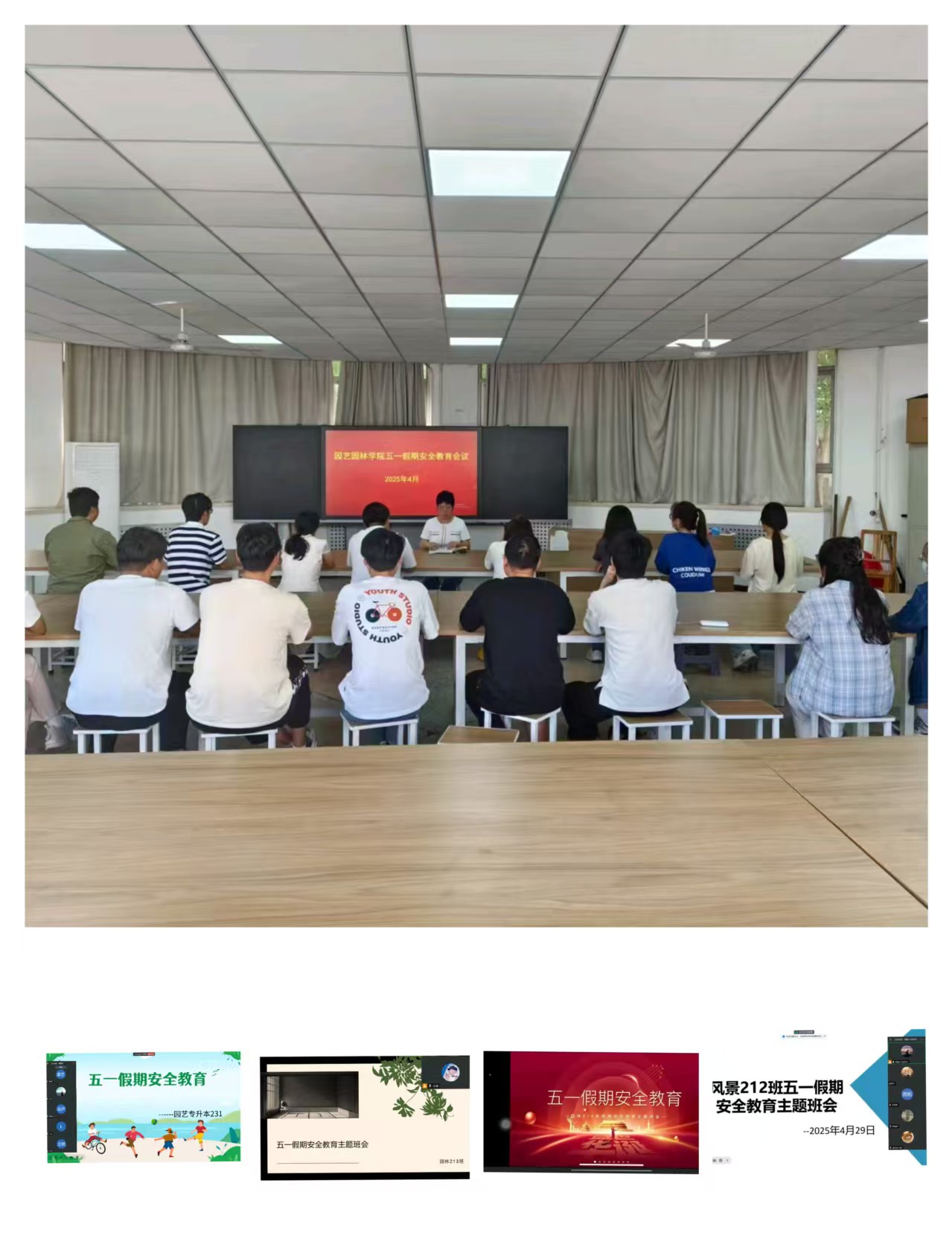 在A101会议室召开“五一”假期安全教育会议。学院党委副书记王占魁,团委书记刘璐、正科级辅导员曹云,团委副书记王伟瑜、黄金旭及学生骨干代表参加此次会议。会议由刘璐主持。会上,黄金旭传达了学校《关于2025年“五一”劳动节放假安排的通知》;王伟瑜领学了《关于禁止私自组织学生集体外出、旅游的通知》;曹云领学了《河南科技学院学生宿舍管理办法》。最后,王占魁从交通安全、宿舍安全、防溺水、电信防诈骗、反邪教等方面,结合实际案例做出安全提醒,希望大家:一要绷紧“安全弦”,做自身健康的“首席守护官”;二要织密“防护网”,做校园安全的“共同责任人”;三要擦亮“智慧眼”,做网络安全的“清醒代言人”;四要勇担“先锋责”,做社会安全的“青春担当者”。