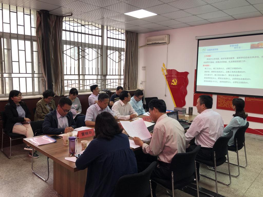 5月11日上午10时,校基层党建评估第三考察组尤太生、巴新华、任贯中、雷晓环莅临我院考察评估党建、统战工作,我院党委书记冀红举、院长刘会超、副书记陈松玲、副院长郑树景以及各党支部书记和全体辅导员老师20余人参加了评估汇报。